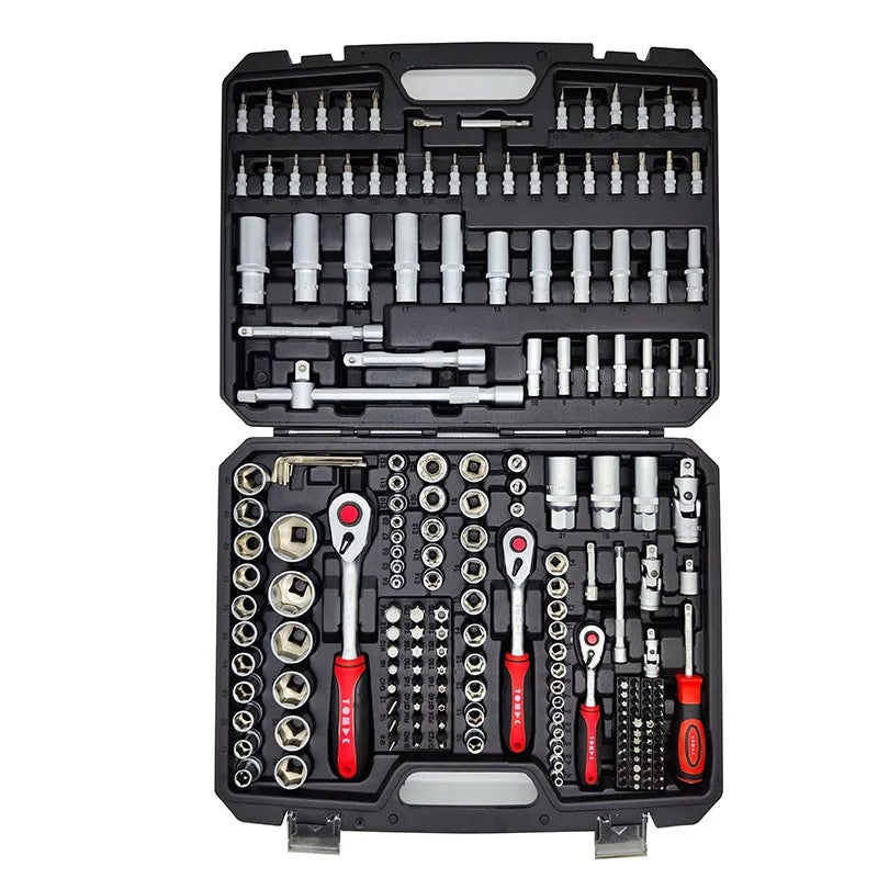 BATHE 202 Stück Steck-/ Reparaturwerkzeugsatz ist ein multifunktionaler Knarrenkasten aus Chrom-Vanadium-Stahl. Mit Ratschenfunktion und universellen Steckschlüsseln eignet sich dieses Set sowohl perfekt für Heimwerker als auch Industrie. Enthält ein umfangreiches Bit-Set und bietet metrische Maße sowie eine Herstellergarantie von 6 Monaten. Ideal für verschiedene Anwendungen und Projekte im Bereich Handwerk und Reparatur.